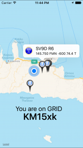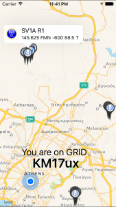 SVLand PRO is an iPhone app helping radio amateurs locate nearby VHF and UHF repeaters, links and digis within Greece. After launch and with a valid gps position, this app will zoom to your current location and present you with a map of Greece with antenna pinpoints. Tap a nearby pinpoint and see the details of repeater (Call, Frequency, Offset and Squelch Tone). At the bottom, your current Grid Locator is marked.